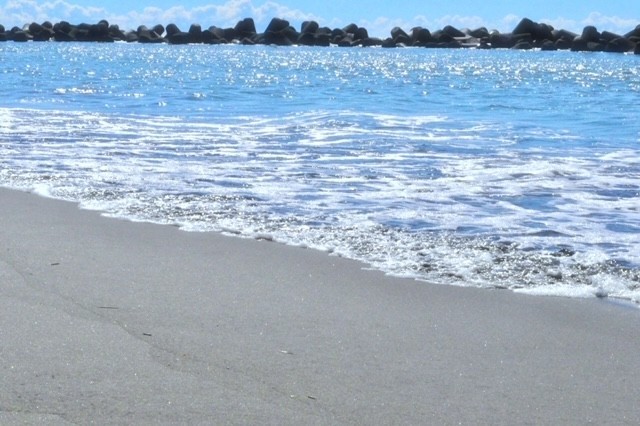 もう少し、アップ目で撮ってもいいかも?と思いますが、手前に砂浜を入れて波の動きを全体に入れることによって奥行きが出るのでより動きのある写真を撮ることができます!