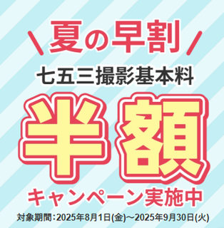 本番前ラストチャンス!七五三撮影料半額 スタジオマリオ埼玉坂戸店