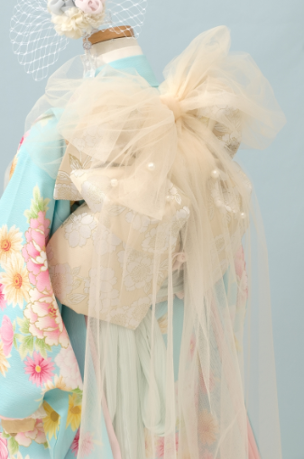 「コーディネートセット」では、 +2,200円でお選びいただいたお着物を白いレースやチュールで統一感とおしゃれな抜け感を演出しさらにかわいくできます!