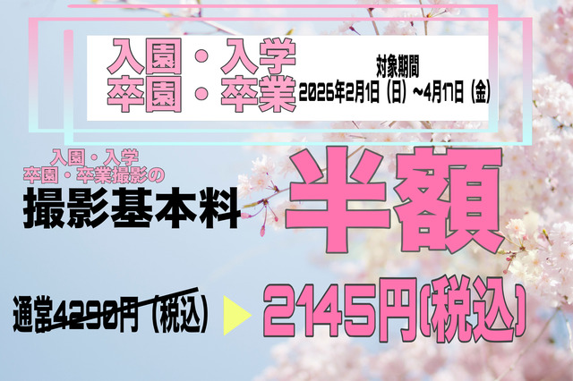 撮影基本料が半額ですので通常撮影よりお得に撮影していただけます♪