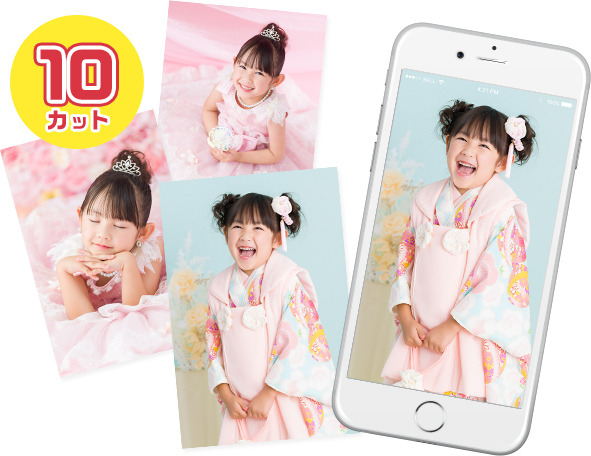 お選びいただいたお写真のデータをスマートフォンに転送します。 SNS投稿や年賀状、祖父母さまへの共有など自由にお使いいただけます