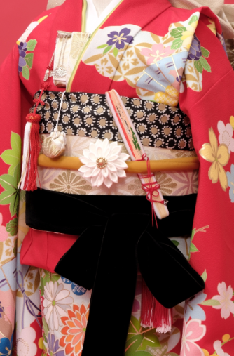 髪飾りと帯留め、羽織飾りには光沢感のある素材をでより一層特別感を出すことができます!